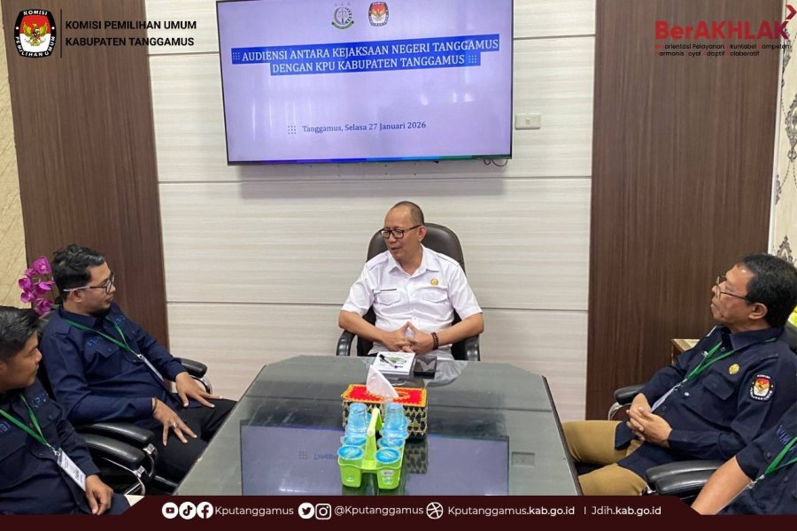 Komisi Pemilihan Umum Kabupaten Tanggamus melaksanakan audiensi dengan Kejaksaan Negeri Tanggamus. Selasa, (27/01/2026) Kegiatan tersebut dalam rangka menjaga silaturahmi diantara dua institusi serta mempererat kerja sama dan sinergitas antar instansi. Pada kesempatan tersebut Komisi Pemilihan Umum Kabupaten Tanggamus menyampaikan agenda kegiatan dimasa non tahapan yang dilaksanakan secara berkelanjutan. Antara lain sosialisasi pendidikan pemilih berkelanjutan, pemutakhiran data pemilih berkelanjutan dan pemutakhiran data partai politik berkelanjutan. Hadir dalam Audiesi tersebut Ketua KPU Kabupaten Tanggamus, Ahmad Bahri dan Anggota KPU Kabupaten Tanggamus diantaranya Zaimna, Habibi, Yoga Afrizal, dan Burnawan M Rusdi turut serta Sekretaris KPU Kabupaten Tanggamus Muhammad Firdaus Ananto, diterima oleh Kepala kejaksaan Negeri Tanggamu, Subari kurniawan, SH, MH, didampingi oleh Kepala Seksi Intelijen (Kasi Intel) Kejaksaan Negeri (Kejari) Tanggamus Deni Alfianto, S.H., M.H. #KPUTanggamus #KPUMelayani ....