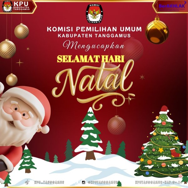 Segenap jajaran Komisi Pemilihan Umum Kabupaten Tanggamus mengucapkan Selamat Hari Natal, 25 Desember 2025.