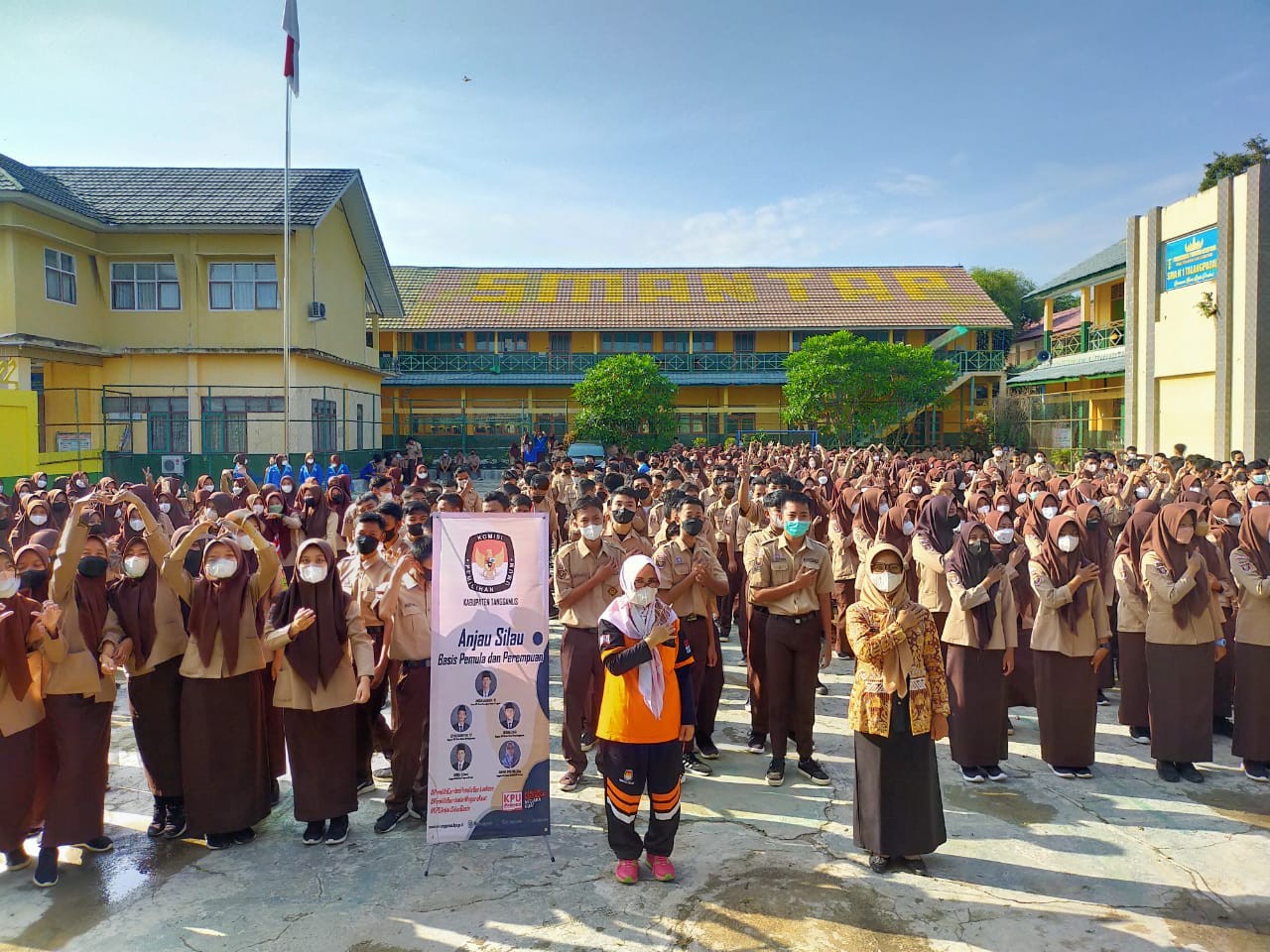 Jum'at, 4 Januari 2022 - KPU Kabupaten Tanggamus Dengan program Anjau Silau kali ini Mengunjungi SMA Negeri 1 Talang Padang Kabupaten Tanggamus. Tepat pukul 7.15 s.d 08.15 WIB melakukan pendidikan pemilih pada Peserta didik yang berjumlah hampir seribu orang. Karena telah diterapkan 100% PTM pada sekolah tersebut.
