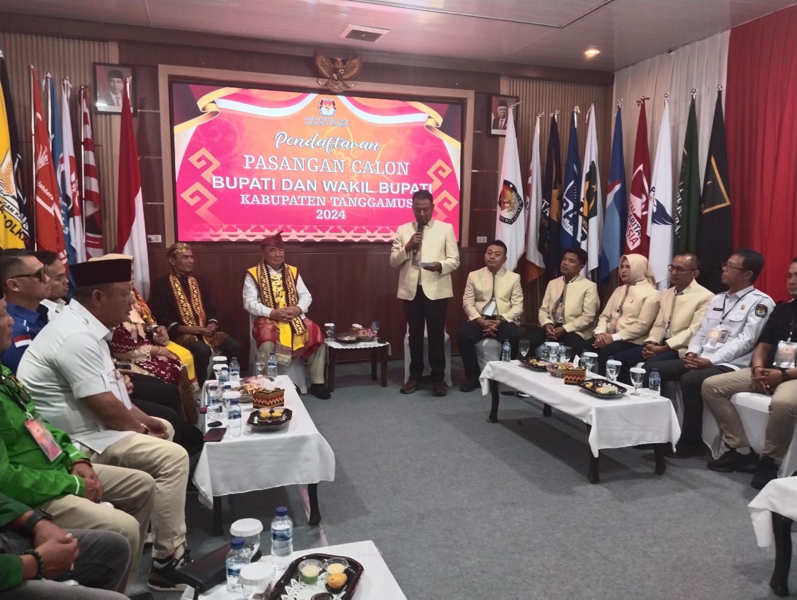 KOMISI PEMILIHAN UMUM KABUPATEN TANGGAMUS MENERIMA PENDAFTARAN BAKAL PASANGAN CALON BUPATI DAN WAKIL BUPATI KABUPATEN TANGGAMUS, MOH. SALEH ASNAWI DAN AGUS SURANTO
