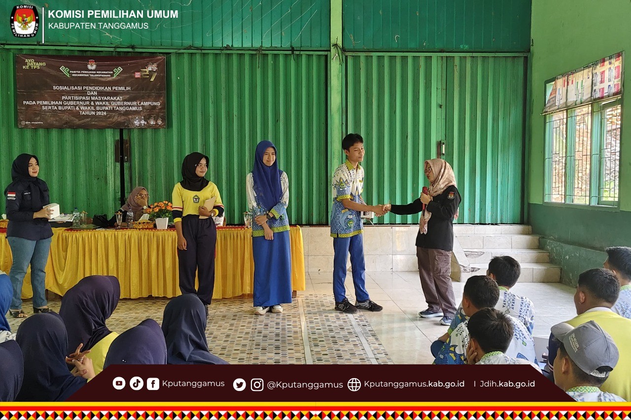 KPU TANGGAMUS GELAR SOSIASLISI PILKADA SERENTAK TAHUN 2024 DI SMAN 1 TALANG PADANG