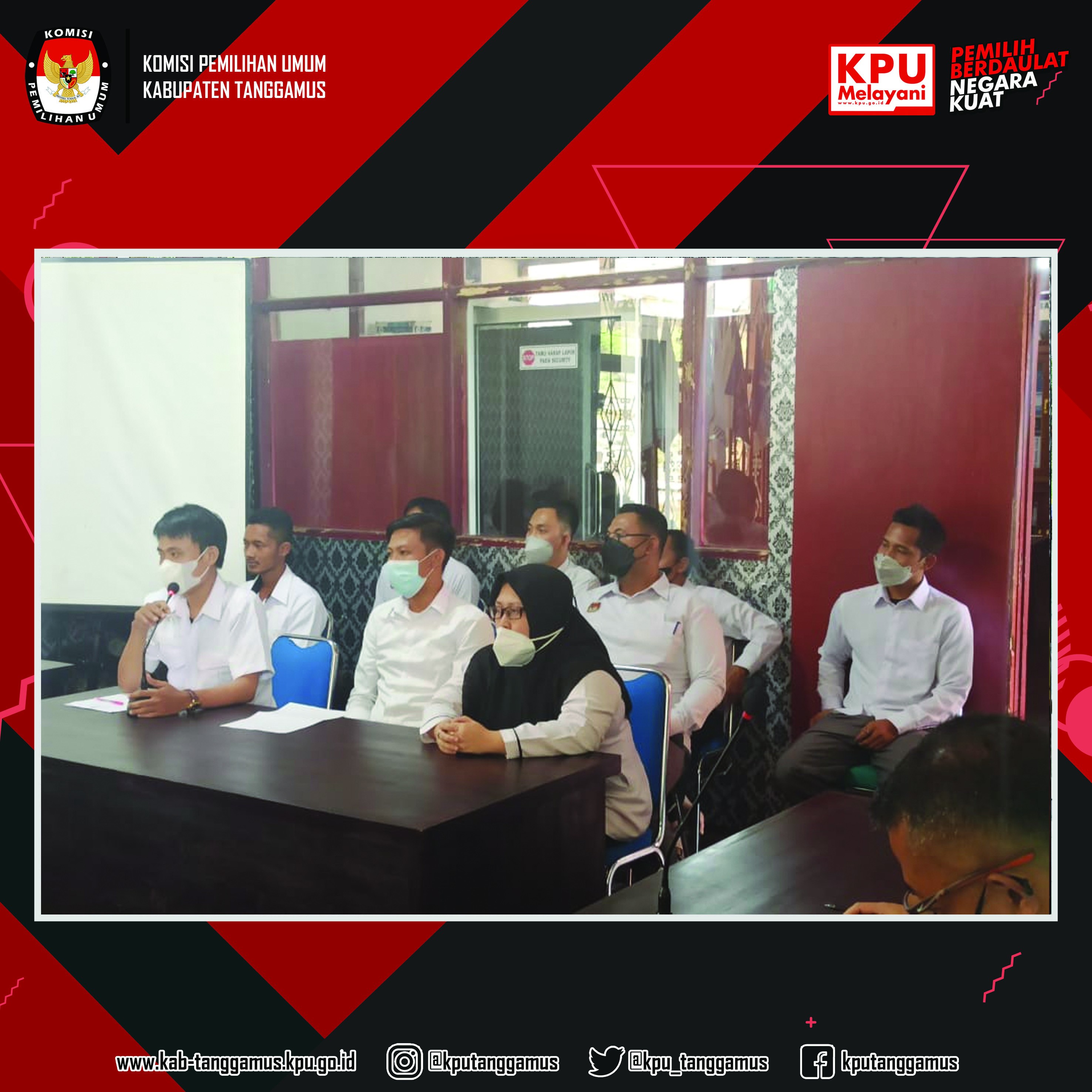 Senin, 17 Januari 2022 - KPU Kabupaten Tanggamus telah melaksanakan rapat pleno rutin yang dihadiri oleh Ketua, Anggota, Sekretaris dan Para Kasubbag serta staf Sekretariat pada KPU Kabupaten Tanggamus tentang Tata Kerja KPU Kabupaten Tanggamus dengan mendasarkan pada ketentuan PKPU Nomor 3 Tahun 2020 Tentang Perubahan Atas Peraturan KPU Nomor 8 Tahun 2019 Tentang Tata Kerja KPU, KPU Kabupaten/Kota sebagaimana telah dilakukan Perubahan PKPU Nomor 4 Tahun 2021.