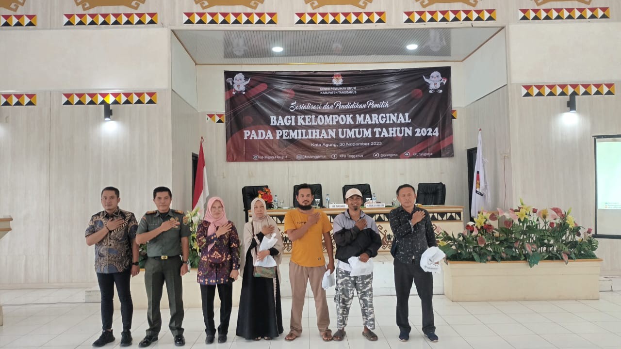 KPU Tanggamus menggelar acara sosialisasi dan pendidikan pemilih dalam rangka upaya meningkatkan Partisipasi Masyarakat pada pemilu 2024 mendatang. Kali Ini KPU Tanggamus menyasar Masyarakat Segment Kelompok marjinal wilayah Kota Agung, bertempat di Islamic Center. Dengan mengundang kaum marginal sekitar _+ 100 peserta.