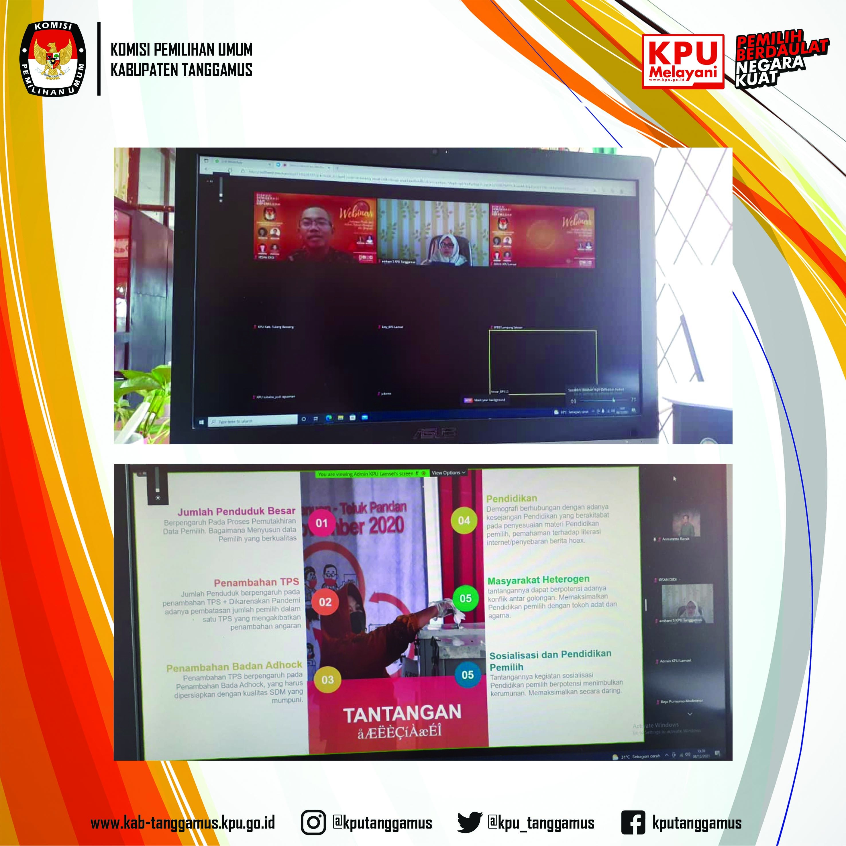 Rabu, 8 Desember 2021 - KPU Kabupaten Tanggamus mengikuti Webinar Diskusi Demokrasi dan Kepemiluan Dalam Tinjauan Demografi dan Geografis yang diselenggarakan oleh KPU Kabupaten Lampung Selatan pada pukul 09.00 WIB. Webinar dibuka oleh Anstrurasta RZ Ketua KPU Lapung Selatan dan menghadirkan Narsumber Dulkahar Kepala BPBD Lampung Selatan, Anwar Kepala BPS Lampung Selatan dan sebagai Moderator Irsan Didi Anggota KPU Lampung Selatan, tak lupa pemantik webinar Antoniyus Cahyalana, M.IP anggota KPU Provinsi Lampung Divisi Sosdiklih dan Parmas.