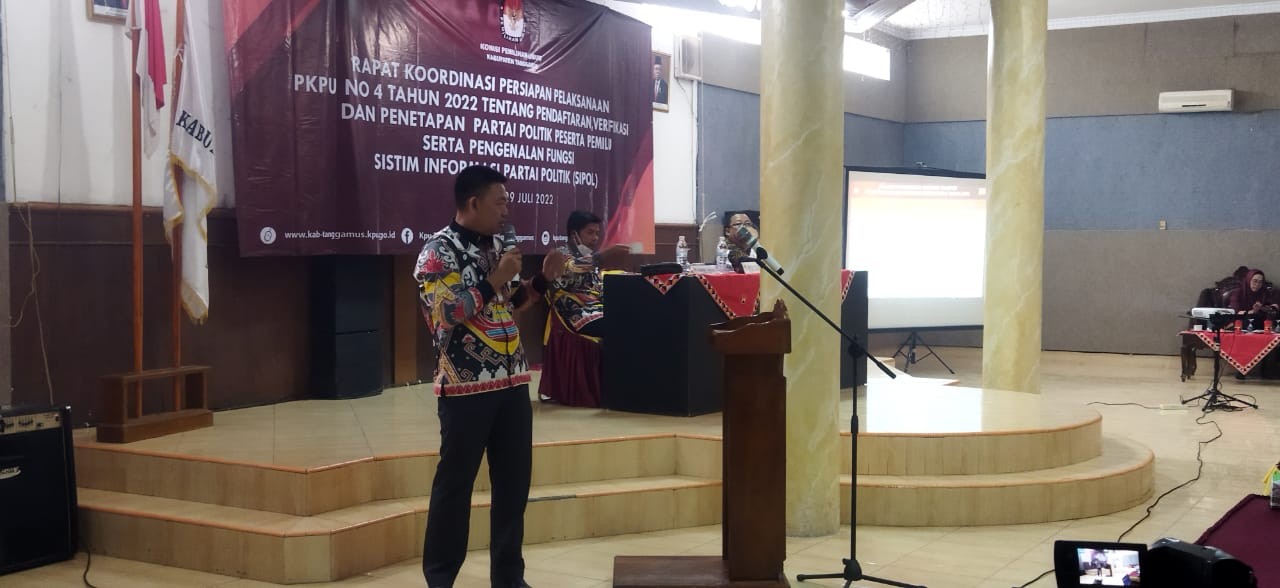 Kota Agung, 25 Juli 2022 - Komisi Pemilihan Umum Kabupaten Tanggamus menghadiri undangan KPU RI dalam rangka Bimbingan Teknis Peraturan KPU Tentang Pendaftaran, Verifikasi, dan Penetapan Partai Politik Peserta Pemilu Serta Pengenalan Fungsi Sistem Informasi Partai Politik (SIPOL). Kegiatan dilaksanakan di Hotel Grand Sahid Jaya Jakarta Pusat dari Tanggal 22 Juli sampai dengan 25 Juli 2022.