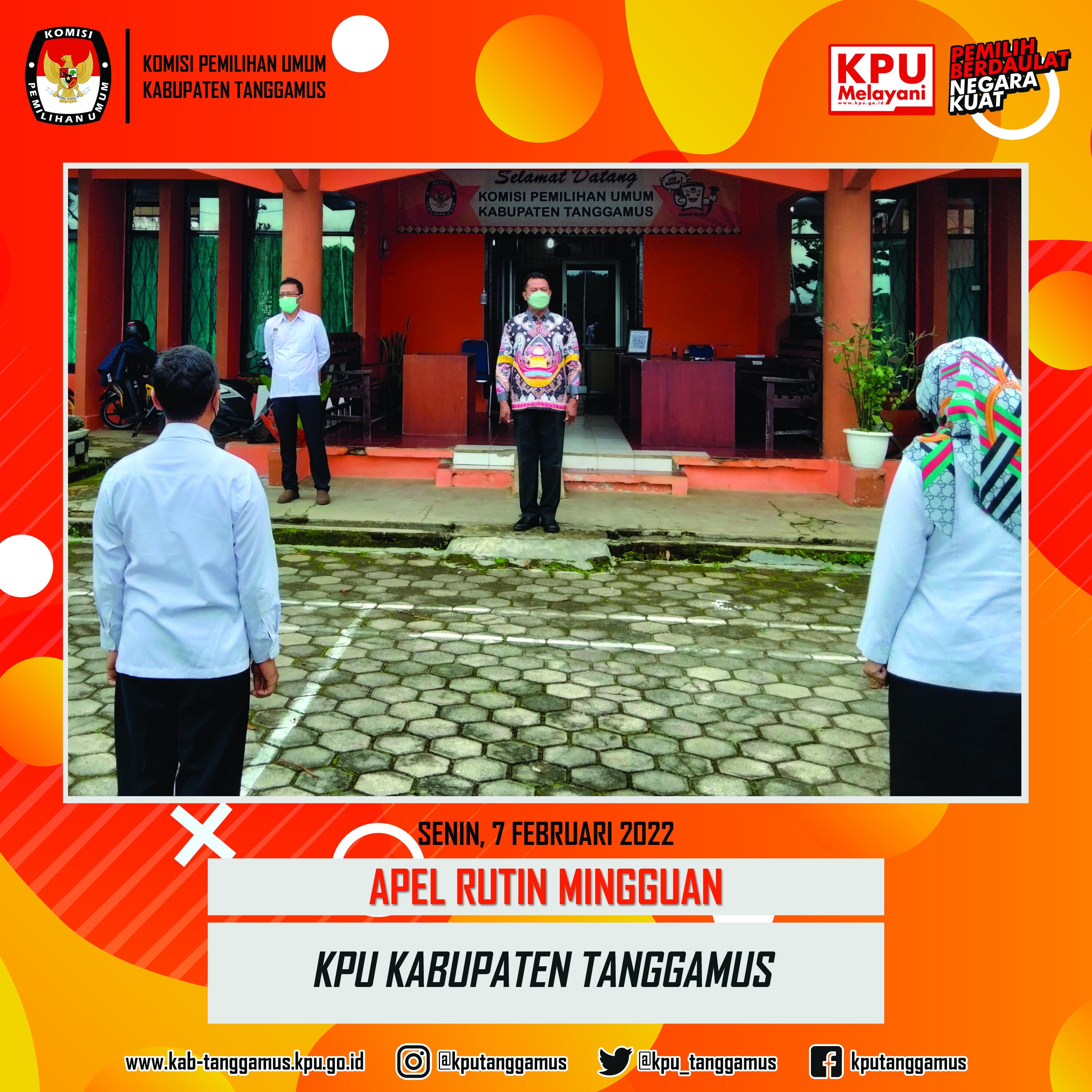 Senin 14 Februari 2022, Komisi Pemilihan Umum Kabupaten Tanggamus melaksanakan Nonton Bareng dalam acara Peluncuran Hari Pemungutan Suara Pemilu serentak tahun 2024 melalui live streaming di canal YouTube KPU RI. Dalam kesempatan itu Ketua KPU RI Ilham Saputra dalam sambutannya berharap melalui pemilu akan terpilih pemimpin yang mampu mensejahterakan masyarakat baik dari eksekutif dan legislatif. Kegiatan tersebut diikuti oleh 37 provinsi yang menyaksikan melalui live streaming di canal youtoube KPU RI. Ditempat yang berbeda kegiatan tersebut juga disaksikan oleh Bupati Kabupaten Tanggamus dan sekretaris Daerah kabupaten Tanggamus secara daring diruangan kerjanya masing-masing. Sementara undangan yang hadir diaula KPU kabupaten Tanggamus yakni Kejaksaan Negeri Kabupaten Tanggamus, Bawaslu, Polres Tanggamus, Ketua Partai Politik, Kesbangpol, BPBD . Komisioner KPU Kabupaten Tanggamus, Kassubag dan seluruh staf sekretariat KPU kabupaten Tanggamus. Acara berlangsung dengan khidmat, para tamu undangan menyaksikan acara peluncuran hari pemungutan suara pemilu serentak tahun 2024 dengan seksama dan bersemangat untuk menyambut hari pemilu tahun 2024 yang, langsung umum, bebas dan Jurdil meskipun ditengah wabah pandemi covid 19. #pemilu serentak 2024