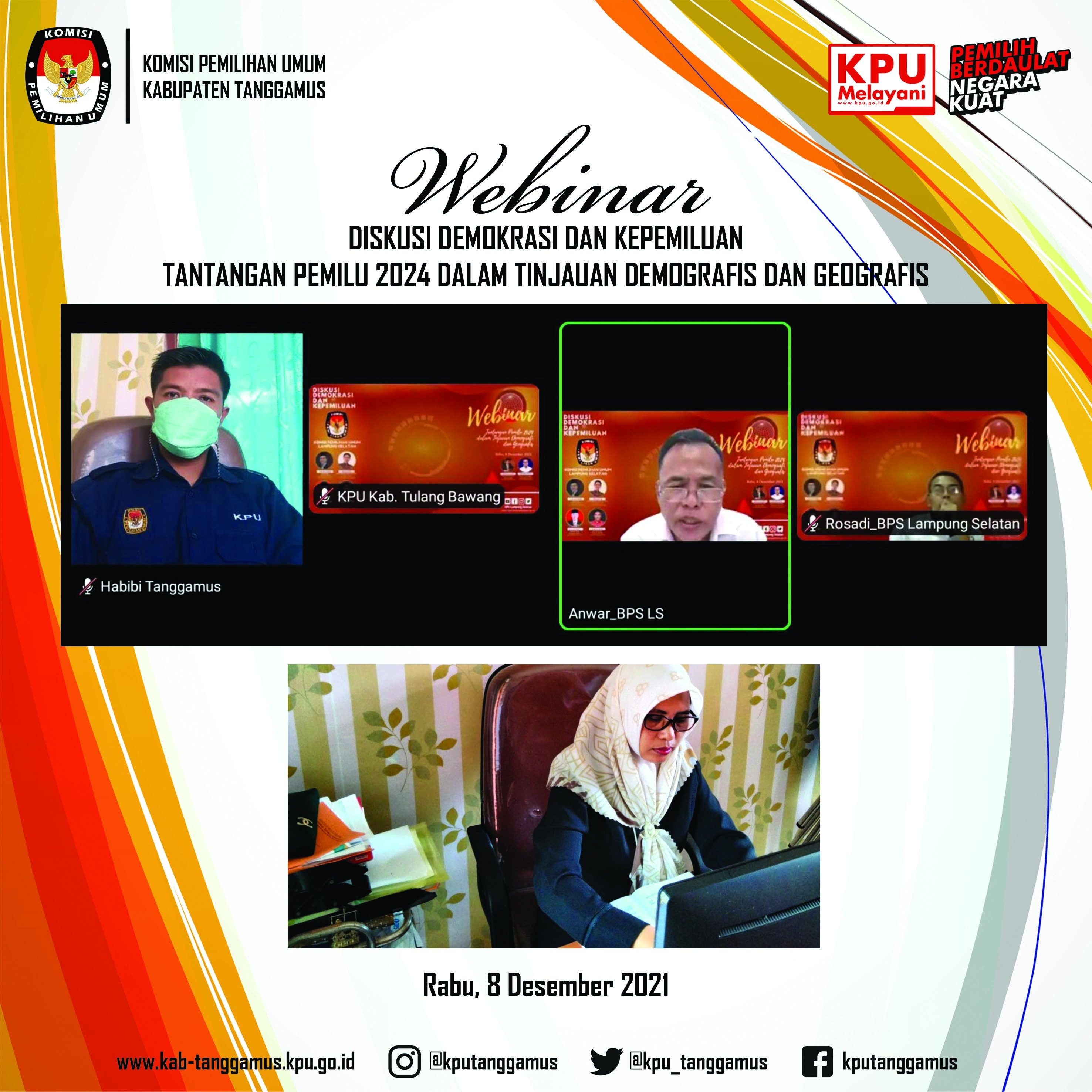 Rabu, 8 Desember 2021 - KPU Kabupaten Tanggamus hadir pada webinar Seri V : Open Data KPU untuk Ekosistem Civitech Pemilu 2024 Yang Demokratis. Amhani. S ikuti live streaming dari youtube KPU RI tepat pukul 10.00 s.d 12.15 WIB. acara dibuka oleh Ketua KPU RI Ilham Syaputra. Lalu dilanjutkan oleh Ketua Divisi Data dan Informasi Bapak Viryan Aziz, beliau menyampaikan bahwa KPU berusaha menerapkan Open Data sebagai salah satu upaya Transparansi KPU dalam mengolah data sebagai sumber yang valid. Dalam Giat ini hadir sebagi narasumber Bapak Wenseslaus Manggut ketua Umum Asosisi Media Siber Indonesia dan Adinda Tenriangke Muchtar Directur Eksekutif The Indonesian Intitute, Center of Republic Policy Research yang menyampaikan bahwa pada era teknologi seperti sekarang Media-media besar diharapkan menjadi jurnalis berbasis data, agar bisa mengkonsolidasikan dan mencerna data-data yang akan di publikasikan.