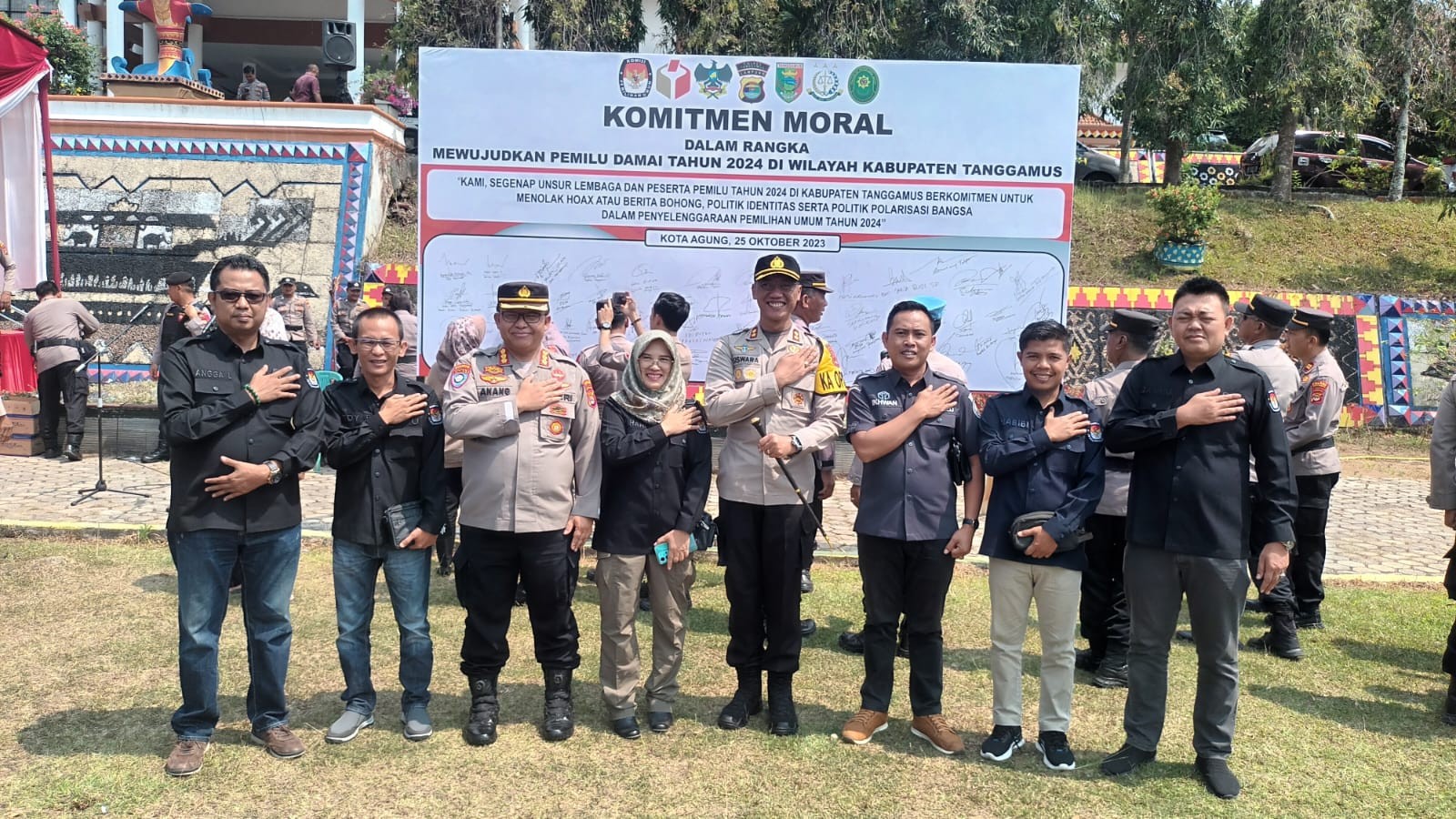 Kapolres Siswara Hadi Chandra berharap kepada seluruh stacholder untuk menandatangani Komitmen Moral dalam menjaga sistem keamanan kota selama tahapan Pemilu 2024. Dan seluruh stacholder yang hadir diminta untuk menandatangani Komitmen Moral dalam menjaga sistem keamanan kota selama tahapan Pemilu 2024.